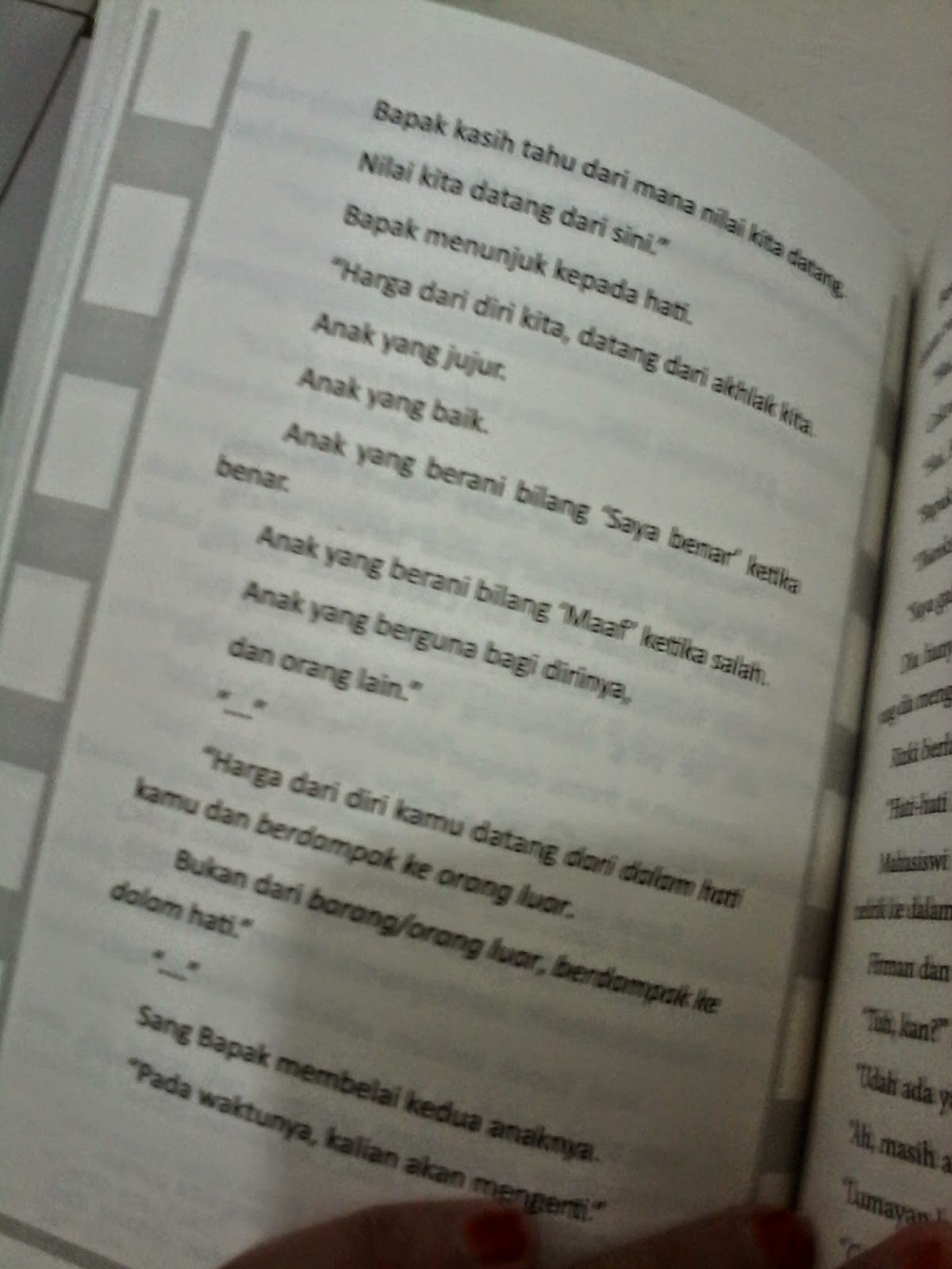 Secara keseluruhan, hal paling menonjol dan menarik dari novel ini adalah, terkemasnya materi ‘berat’ tentang parenting dan keluarga menjadi sebuah bacaan renyah dan sama sekali tidak membosankan. Ada pesan di hampir seluruh kalimatnya, tapi tidak membuat pembaca merasa digurui. Ahh, rasanya saya tidak bisa mendeskripsikan kelebihan buku ini dengan baik. Jadi, lebih baik, silahkan membacanya sendiri :)
